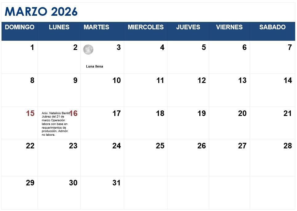 CALENDARIO LABORAL MARZO 2026